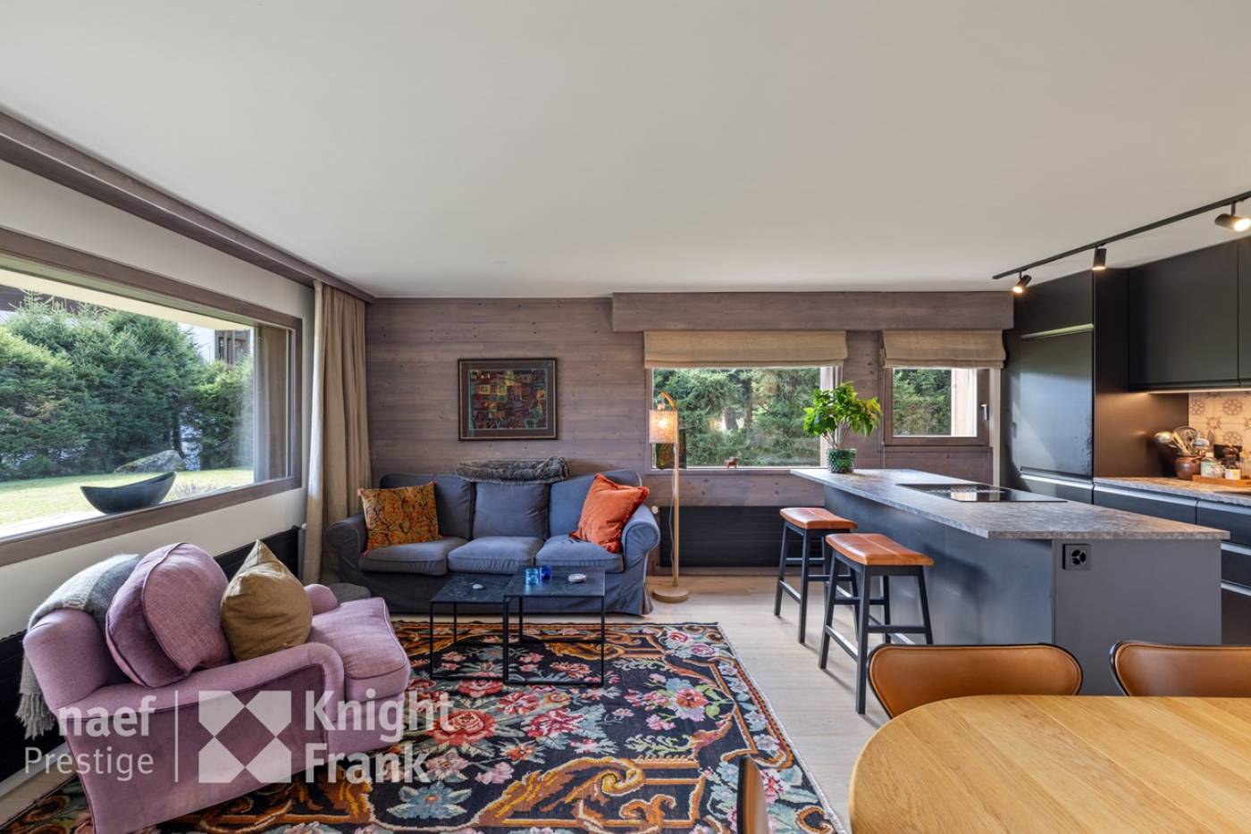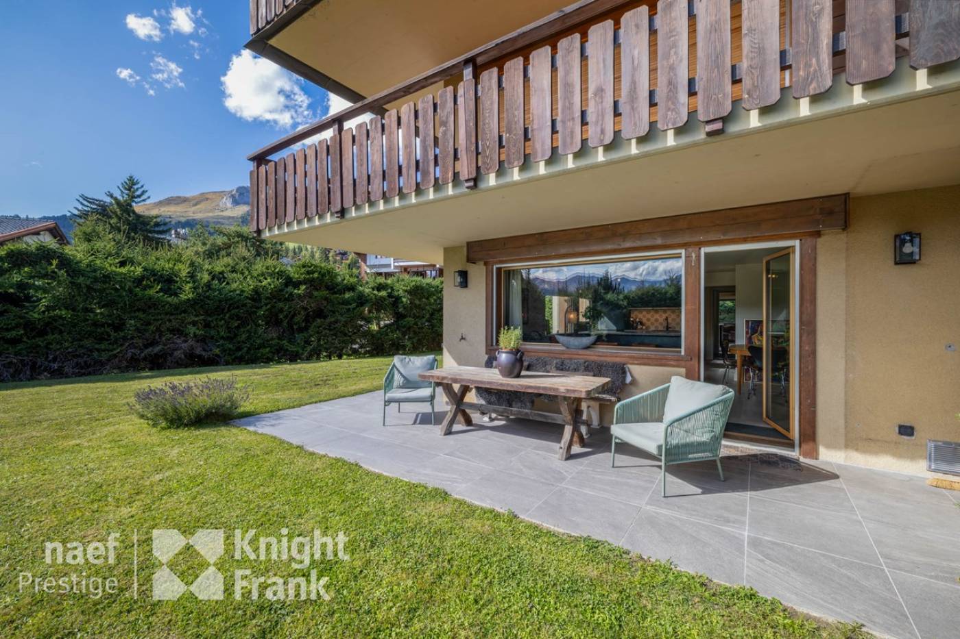 Rez-de-jardin situé dans un cadre calme et verdoyant, à deux pas du golf et des pistes de ski, dans le quartier paisible des Esserts-Le Hameau.