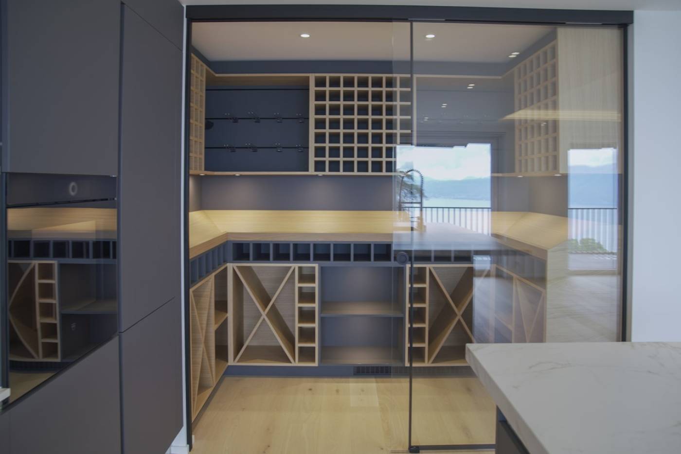 L’architecture, sobre et élégante, met en valeur le paysage grâce à de larges baies vitrées offrant une luminosité optimale et un panorama exceptionnel sur le lac et les Alpes.