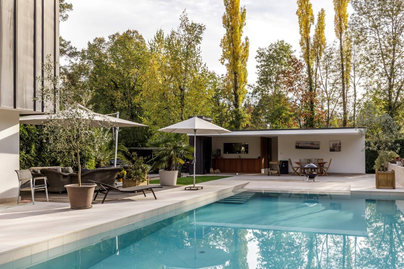 Située au cœur de Conches, une commune résidentielle très recherchée à seulement quelques minutes du centre de Genève, la propriété bénéficie d’un emplacement privilégié. Exposée de manière optimale, elle profite d’un ensoleillement généreux et s’ouvre sur un magnifique jardin agrémenté d’une piscine de 14 x 6 mètres et de son élégant pool house.