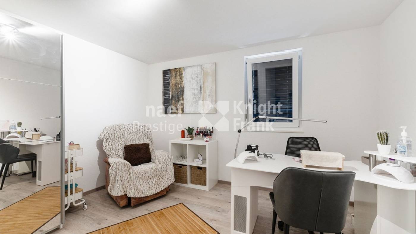Le jardin clos et soigneusement entretenu accueille une piscine, un jacuzzi et un salon avec pergola. Un couvert pour deux véhicules avec prise électrique et plusieurs places extérieures sont à disposition. Chauffage par pompe à chaleur géothermique, construction aux normes Minergie (non certifiée).