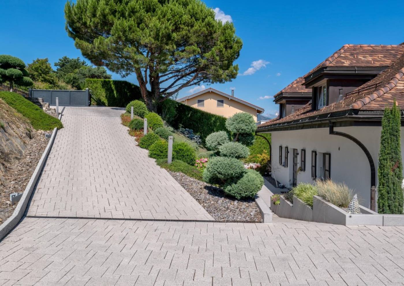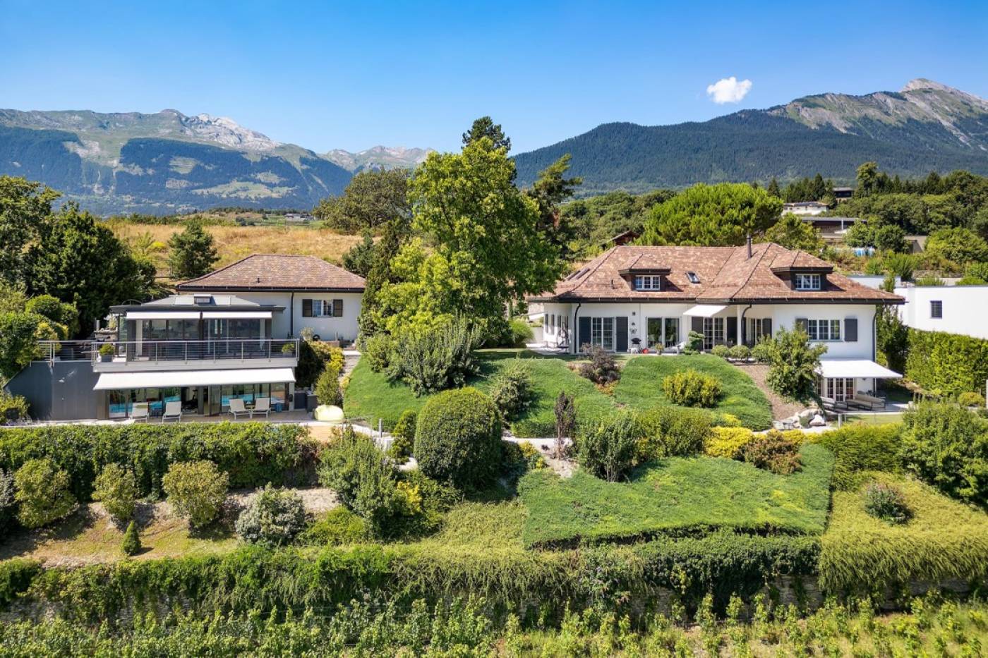 Cette propriété comprend une maison principale de 400 m2 et un poolhouse de 100 m2. Elle est implantée sur une parcelle de 1’987 m2.