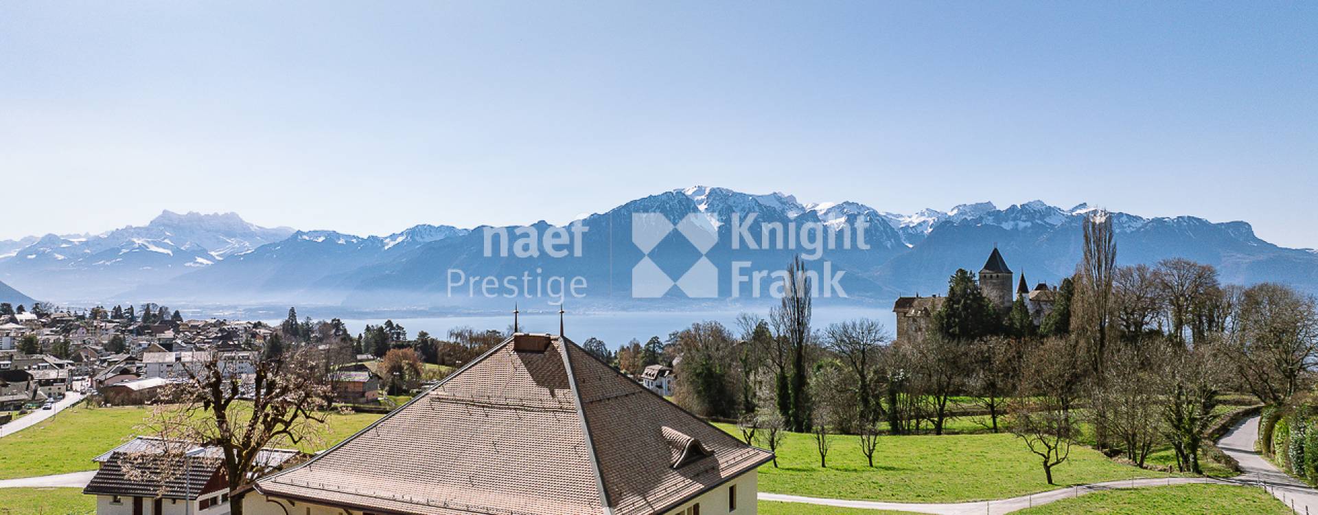Bénéficiant d’une position dominante, la propriété profite d’une belle luminosité et d’une vue magnifique sur le lac Léman, les montagnes environnantes et le Château de Blonay. L’enveloppe du bâtiment (toiture, façades, volets) a été entièrement rénovée en 2018.
