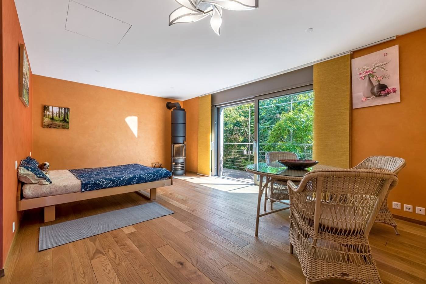 Orientée plein Sud-Ouest, elle bénéficie d’une luminosité exceptionnelle ainsi que d’une superbe vue sur les montagnes et sur son splendide jardin arboré. Les vastes terrasses, le parc soigneusement aménagé et l’étang confèrent à l’ensemble une atmosphère de sérénité et de bien-être absolu.