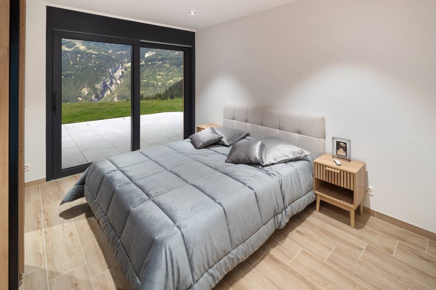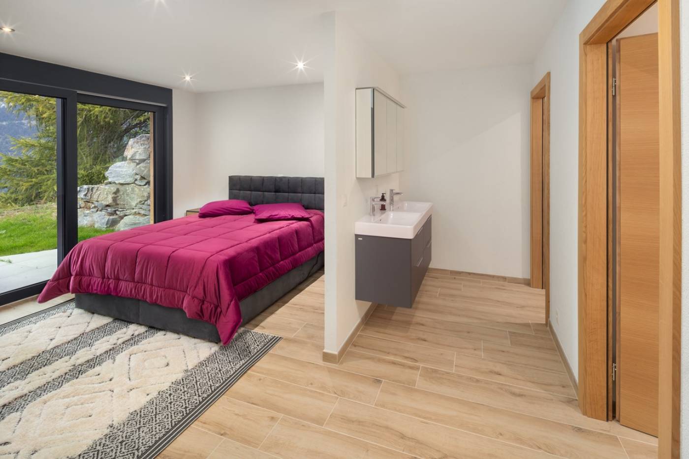 Située à Lens, à cinq minutes de Crans-Montana et répartie sur deux niveaux, la propriété dispose de quatre chambres avec accès direct au jardin. Deux d’entre elles comprennent une salle de bains privative, tandis que les deux autres disposent chacune d’une salle de bains privative située juste de l’autre côté du couloir. Un salon lumineux avec une cuisine ouverte et une vue panoramique exceptionnelle complète l’aménagement.