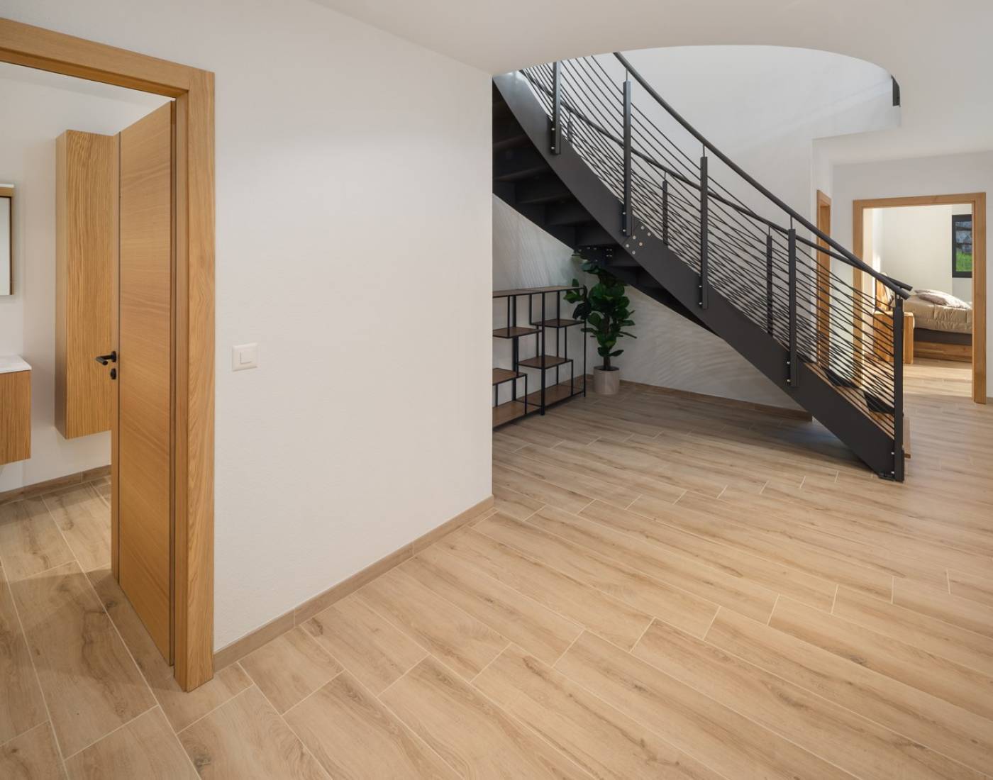 Les finitions intérieures actuelles sont neutres, offrant au futur propriétaire la possibilité de personnaliser le décor à son goût.