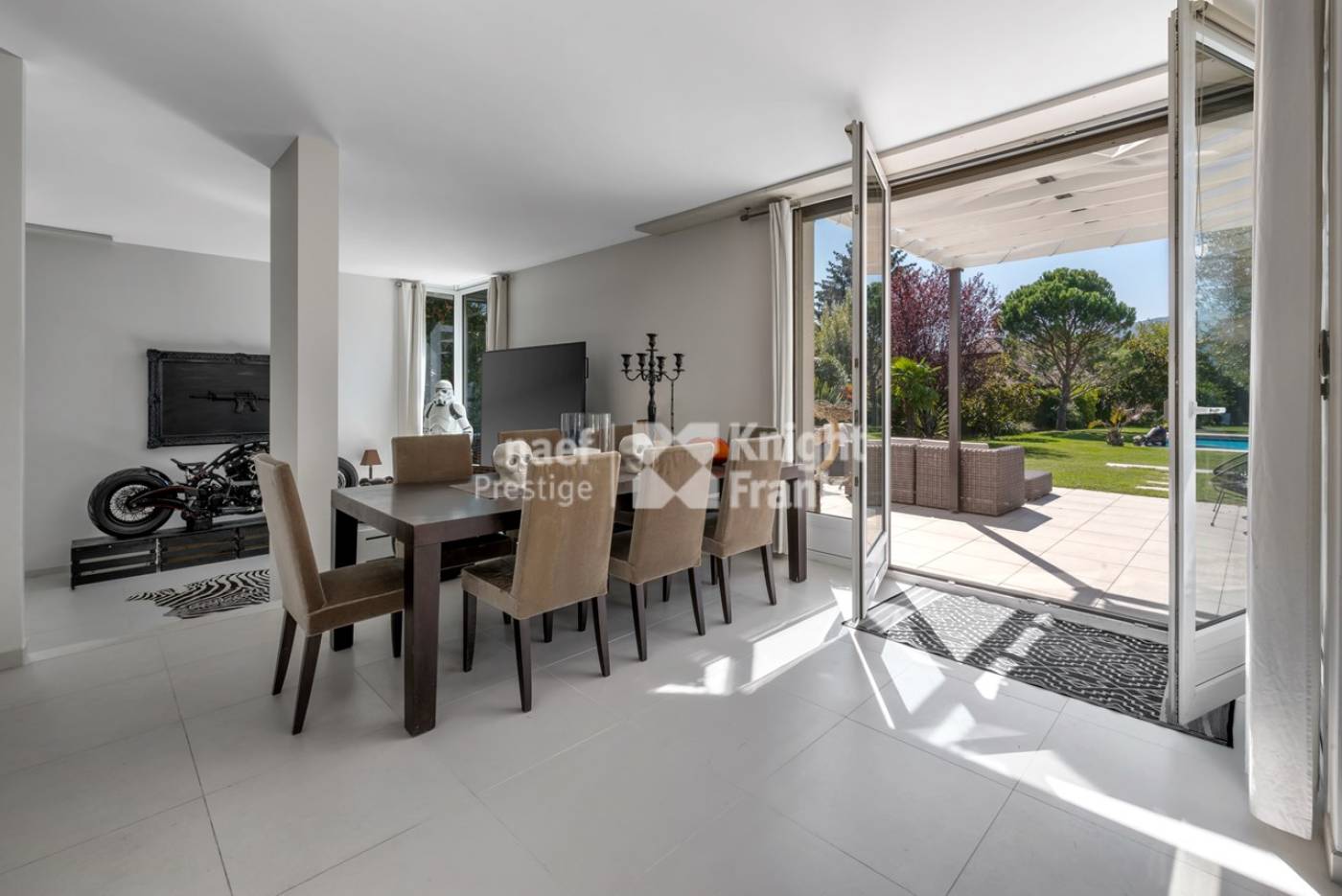 Located in Presinge, in the heart of the Geneva countryside, this stunning contemporary-style architect-designed villa offers approximately 260 sqm of living space and 350 sqm of usable space, set on a generous plot of around 2'285.75 sqm. It provides an exceptional living environment, combining tranquility, comfort, and sophistication.